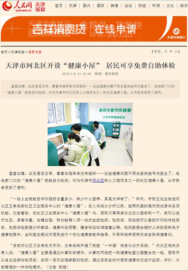 天津市河北区开设"健康小屋"居民可享受免费自助体检