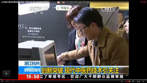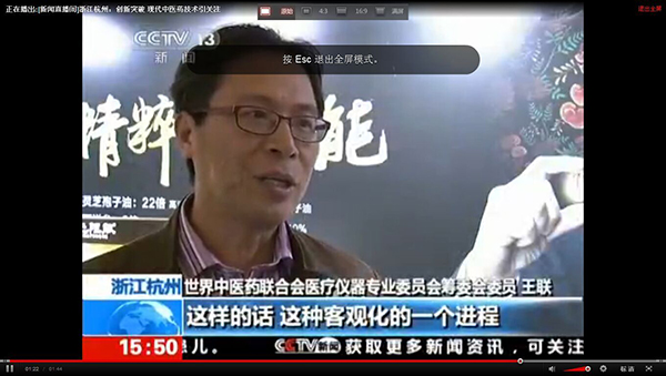 2015全国药店年度峰会上我公司王总接受中央电视台采访,就目前中医诊疗设备及中草药现代化进程发表自己的见解。