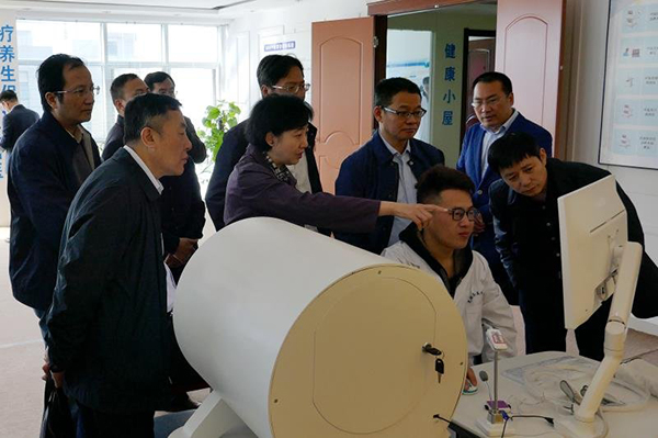 2018年04月09日上午,国家中医药管理局医政司司长蒋健、国家中医药管理局医政司副司长赵文华、国家中医药管理局医政司基层处副处长程强、省卫生计生委副主任、省中医药管理局副局长董明培、省卫生计生委中医药服务管理处处长肖锋、省卫生计生委中医药发展处主任科员吴化成在芜湖市卫生计生委主任秦正华、芜湖市医院管理局副局长柯先明等领导陪同下,来到芜湖圣美孚科技有限公司,考察调研我公司中医大数据中心、云平台建设、新产品研发等相关工作。