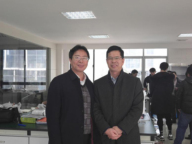图为董事长王联与康恩贝副总陈岳忠合影留念